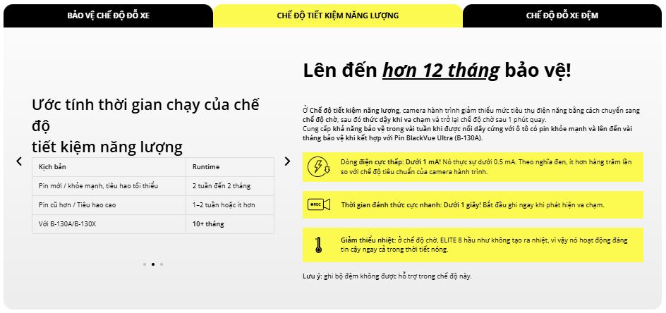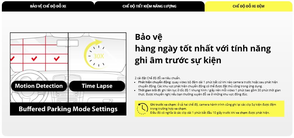 Tính năng đặc biệt: Parking Mode, Tiết kiệm năng lượng bình xe, Phát hiện va chạm