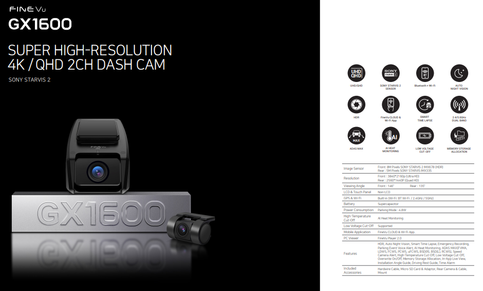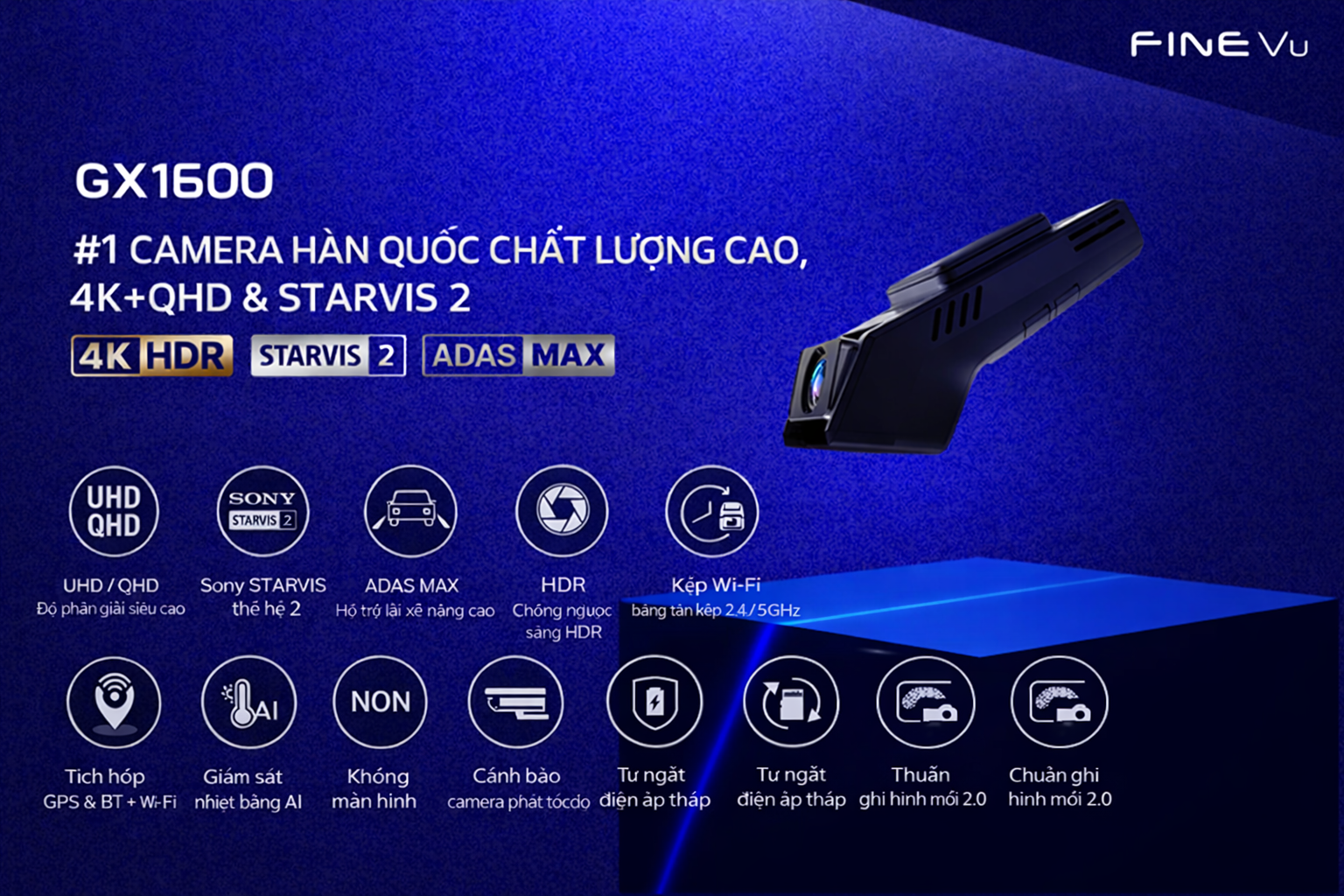 Tên sản phẩm: Camera hành trình FineVu GX1600 2CH 4K :