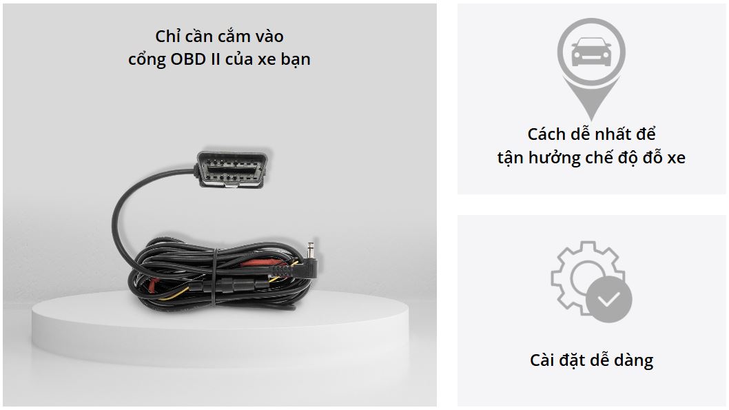 Chỉ cần cắm vào cổng OBD II của xe và đầu nối DC in của camera hành trình.