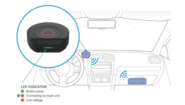 Bao gồm nút “SOS” không dây để kích hoạt ghi Sự kiện thủ công. Hỗ trợ Chế độ đỗ xethông qua cáp nối cứng đi kèm ( lấy điện ACC, B+ ở hộp cầu chì ).