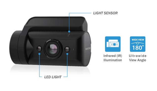 Camera siêu rộng hướng vào bên trong: góc nhìn 180 độcho phép bao quát cả cửa sổ phía người lái và hành khách ở hầu hết các loại xe. Với đèn LED chiếu sáng hồng ngoại, nó ghi lại các chi tiết rõ ràng ngay cả trong bóng tối hoàn toàn.