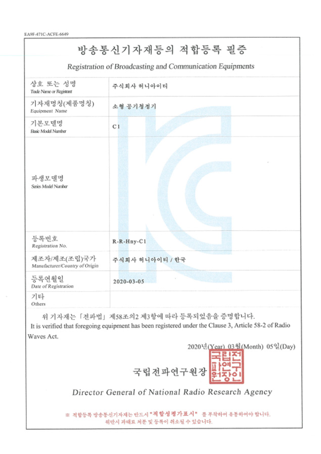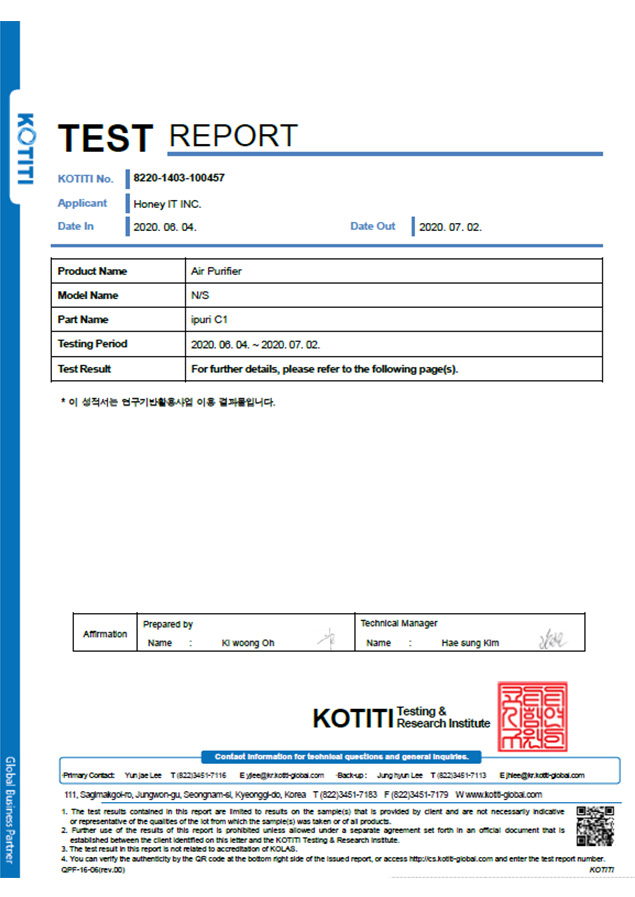 Máy lọc khí Ipuri được thiết kế và sản xuất 100% tại Hàn Quốc với nhiều giấy chứng nhận về thiết kế & chất lượng như: KC, EU-RoHS, FCC, E-MARK