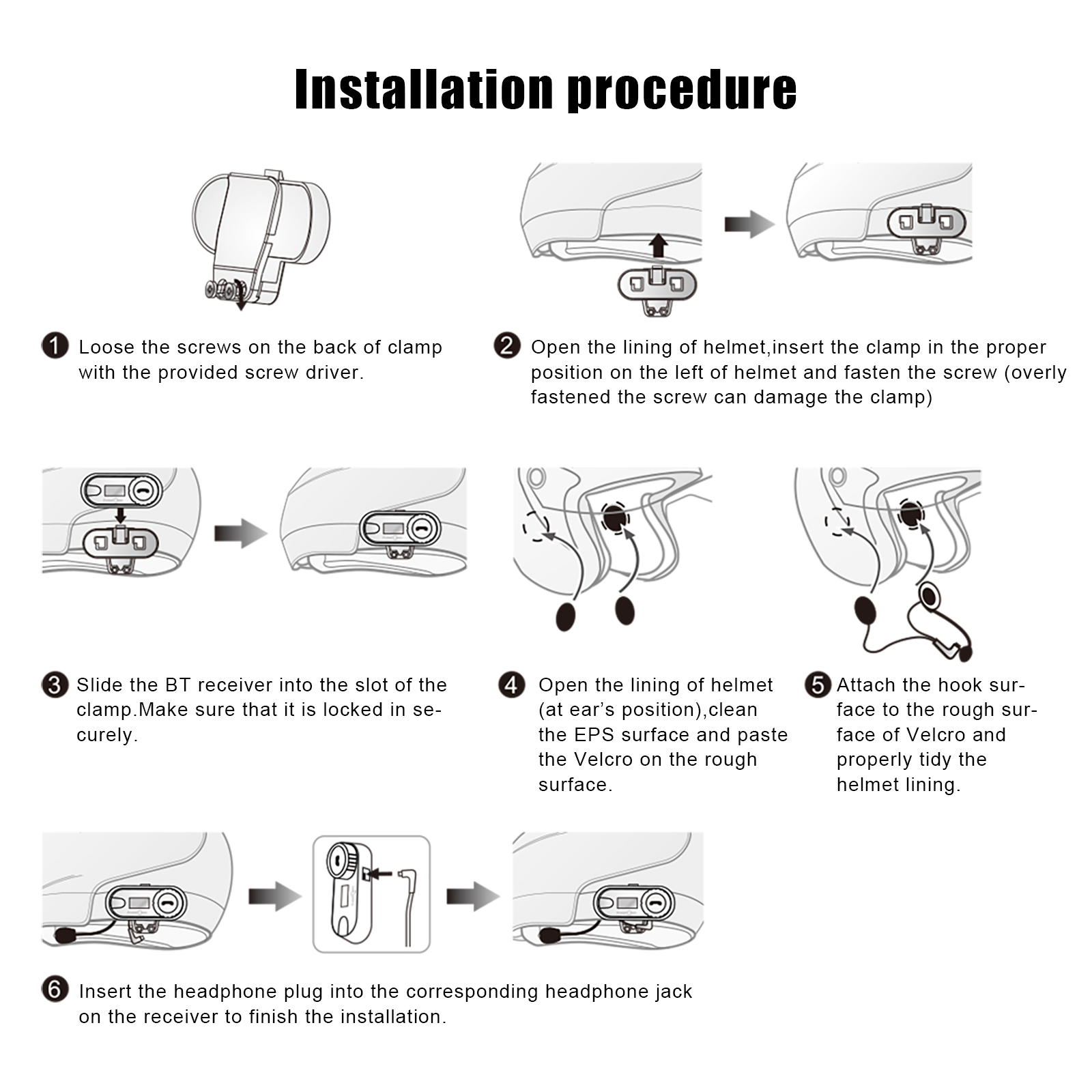 Dưới đây là các bước hướng dẫn lắp đặt thiết bị Bluetooth vào mũ bảo hiểm của bạn: "6 bước"