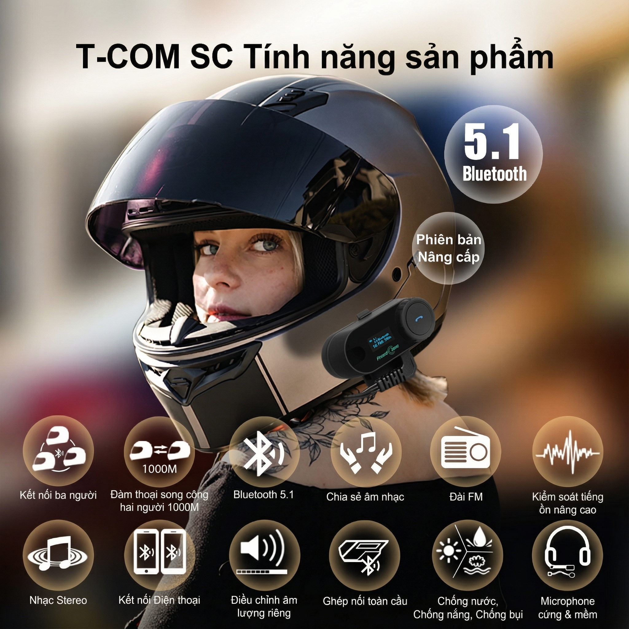 FreedConn TCOM SC Tai Nghe bluetooth 5.1 Gắn Mũ Bảo Hiểm